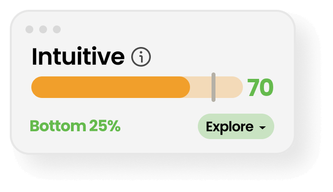 60-100 scale for easy benchmarking and comparison